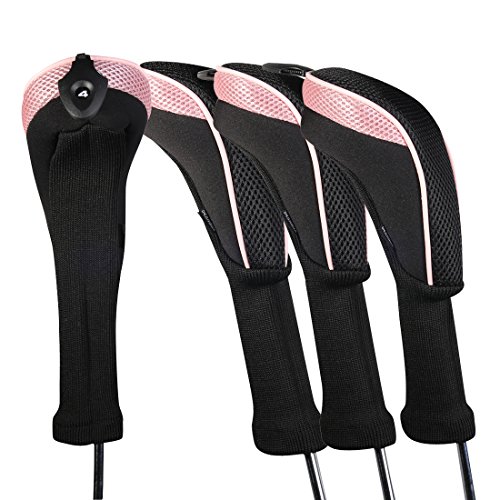 Andux 4 Pack Long Neck Golf Hybrid Club Head Covers Interchangeable No. Tag CTMT-01 (Pink) Reviews